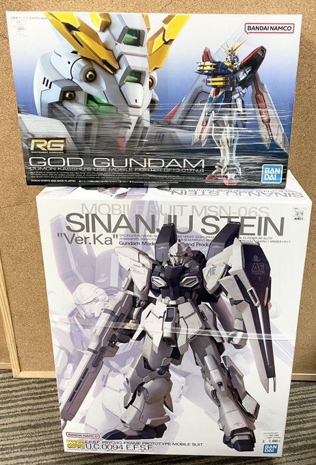 未開封、ガンプラ買取いたしました! 1/144 ゴッドガンダムと1/100 シナンジュスタインとなります。 まだまだ買取の在庫が大量にあります。